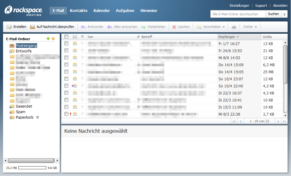 Aber zurück zum Thema dieses Beitrags. Die Tatsache allerdings das Jimdo E-Mail Konten genauso im Rackspace System registriert sind wie normale Rackspace Mail Konten bringt uns einen kleinen aber feinen Vorteil. Denn auch Rackspace bietet seinen Nutzern eigene Webmail Oberflächen. Und diese können wir tatsächlich auch mit den Jimdo E-Mail Konten nutzen. Eine Auflistung ist unten zu finden.